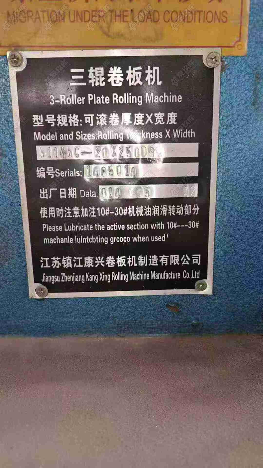 For sale: Kangxing 2005 20* 2.5-meter three-roll plate bending machine